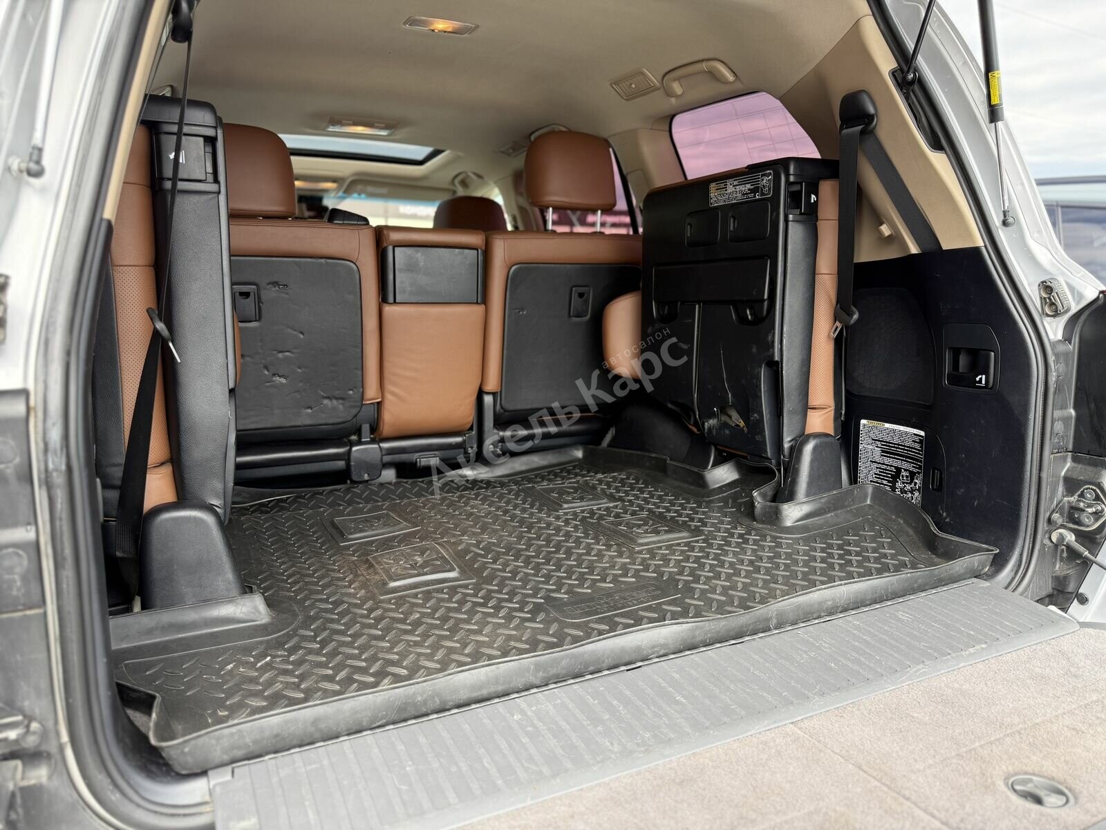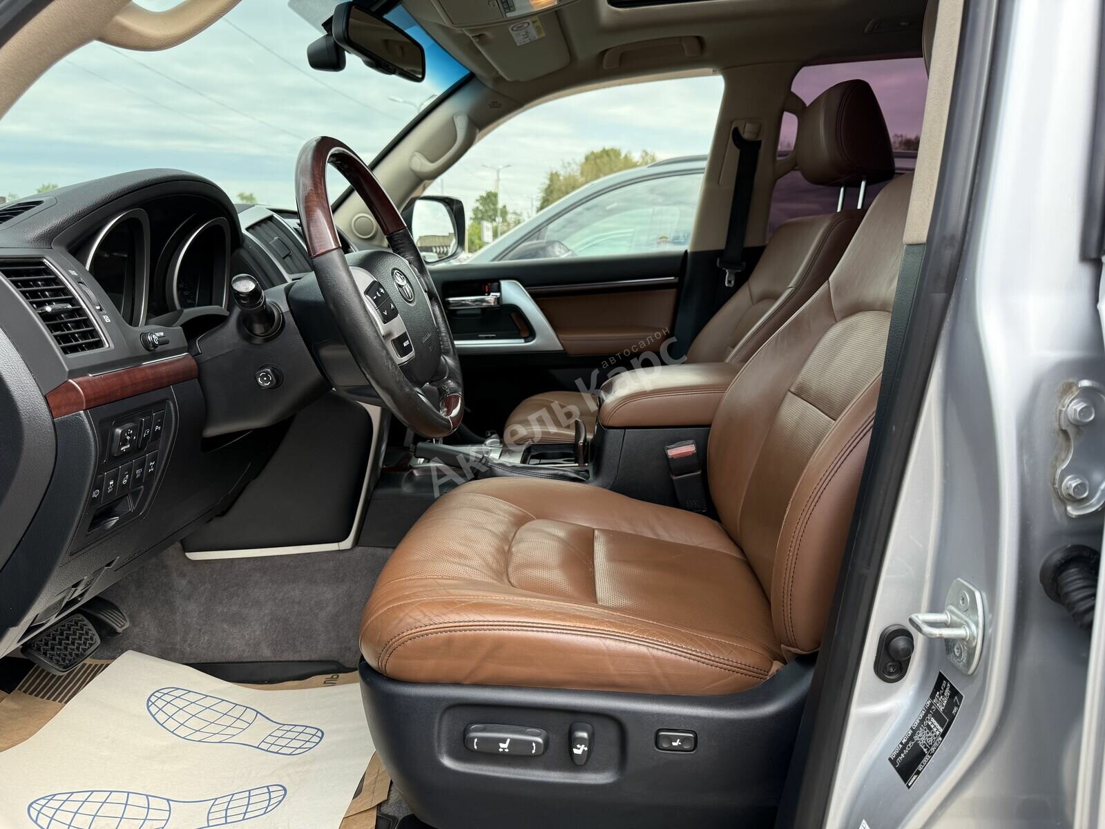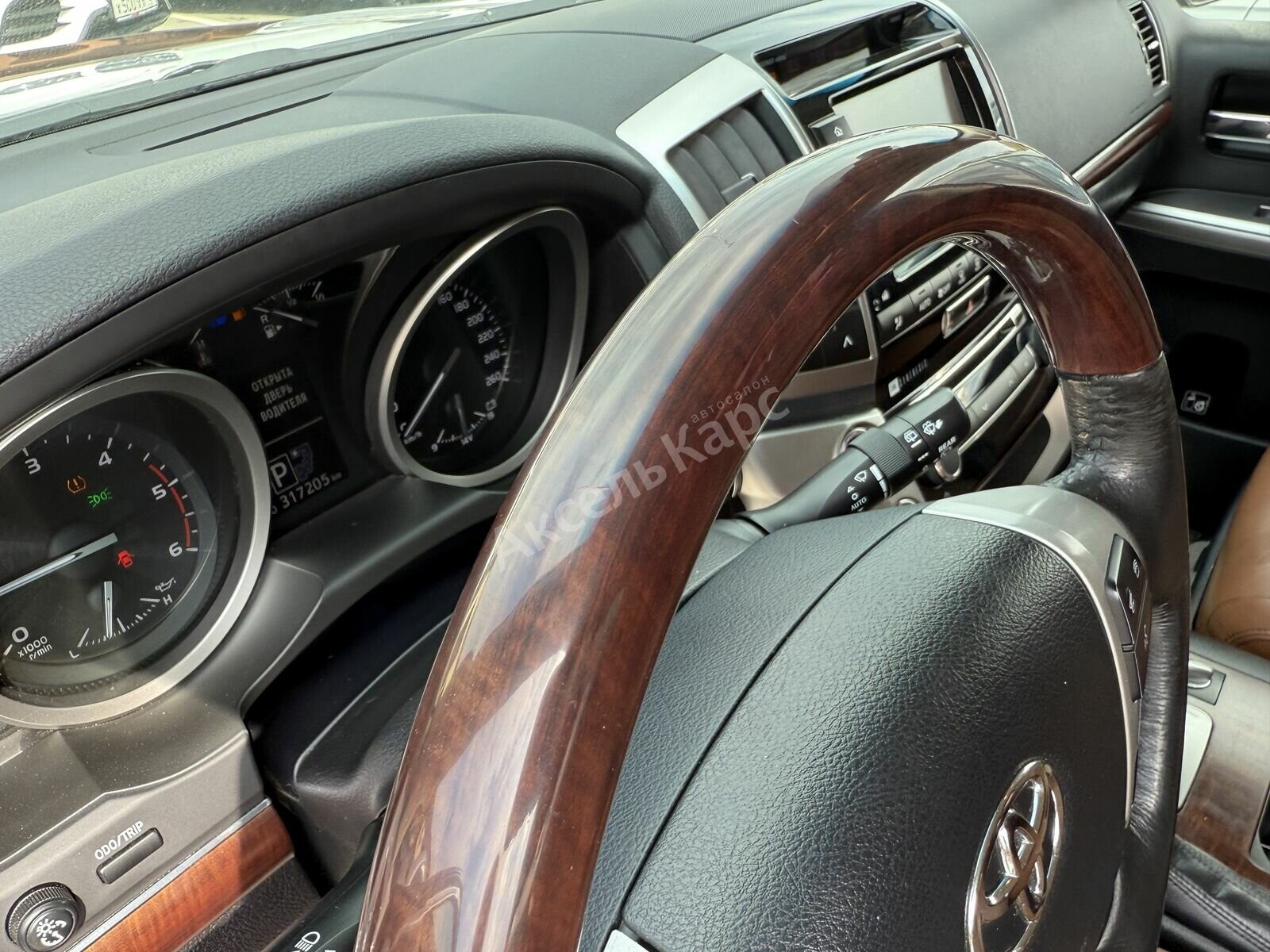 Toyota Land Cruiser 200 Series Рестайлинг 1 2014 года — надёжный внедорожник, который подойдёт как для городских поездок, так и для путешествий по сложным маршрутам. Пятидверный кузов, дизельный двигатель объёмом 4,5 литра и мощностью 235 лошадиных сил, а также автоматическая коробка передач обеспечивают уверенное движение и хорошую динамику. Проходимость автомобиля остаётся на высоком уровне, а проверенный временем дизайн не теряет актуальности. Пробег составляет 317 000 км, но конструкция автомобиля зарекомендовала себя как надёжная и неприхотливая в обслуживании. В салоне комфортно разместятся все пассажиры — есть третий ряд сидений. Сиденья водителя и пассажира оснащены памятью положения, а вентиляция и подогрев всех сидений делают поездки ещё более комфортными. Мультифункциональное рулевое колесо, регулировка руля по высоте и вылету, а также круиз-контроль упрощают управление. Запуск двигателя с кнопки и система доступа без ключа добавляют удобства в повседневном использовании. Автомобиль оснащён современными системами помощи водителю: парктрониками (передним и задним), камерой заднего вида и камерой 360 градусов. Электропривод крышки багажника облегчает загрузку багажа. Безопасность обеспечивают антиблокировочная система тормозов (ABS), система курсовой стабилизации (ESP / ESC / DSC / VSA) и полный набор подушек безопасности: для водителя (включая коленную), пассажира, боковые (в том числе задние) и оконные (шторки). Система помощи при старте в гору пригодится при движении по сложным участкам дороги. Среди других удобств — многозонный климат-контроль, аудиосистема с AUX, Bluetooth, USB, розетка 12V, навигационная система и бортовой компьютер. Обогрев лобового стекла, зеркал и рулевого колеса, а также электрорегулировка и электроскладывание зеркал делают эксплуатацию автомобиля комфортной в любое время года. Внешний вид дополняют 18-дюймовые диски, рейлинги на крыше и декоративные молдинги. В салоне — качественная обивка из кожи, отделка кожей рулевого колеса и рычага КПП. Также есть охлаждаемый перчаточный ящик, люк и передний центральный подлокотник.